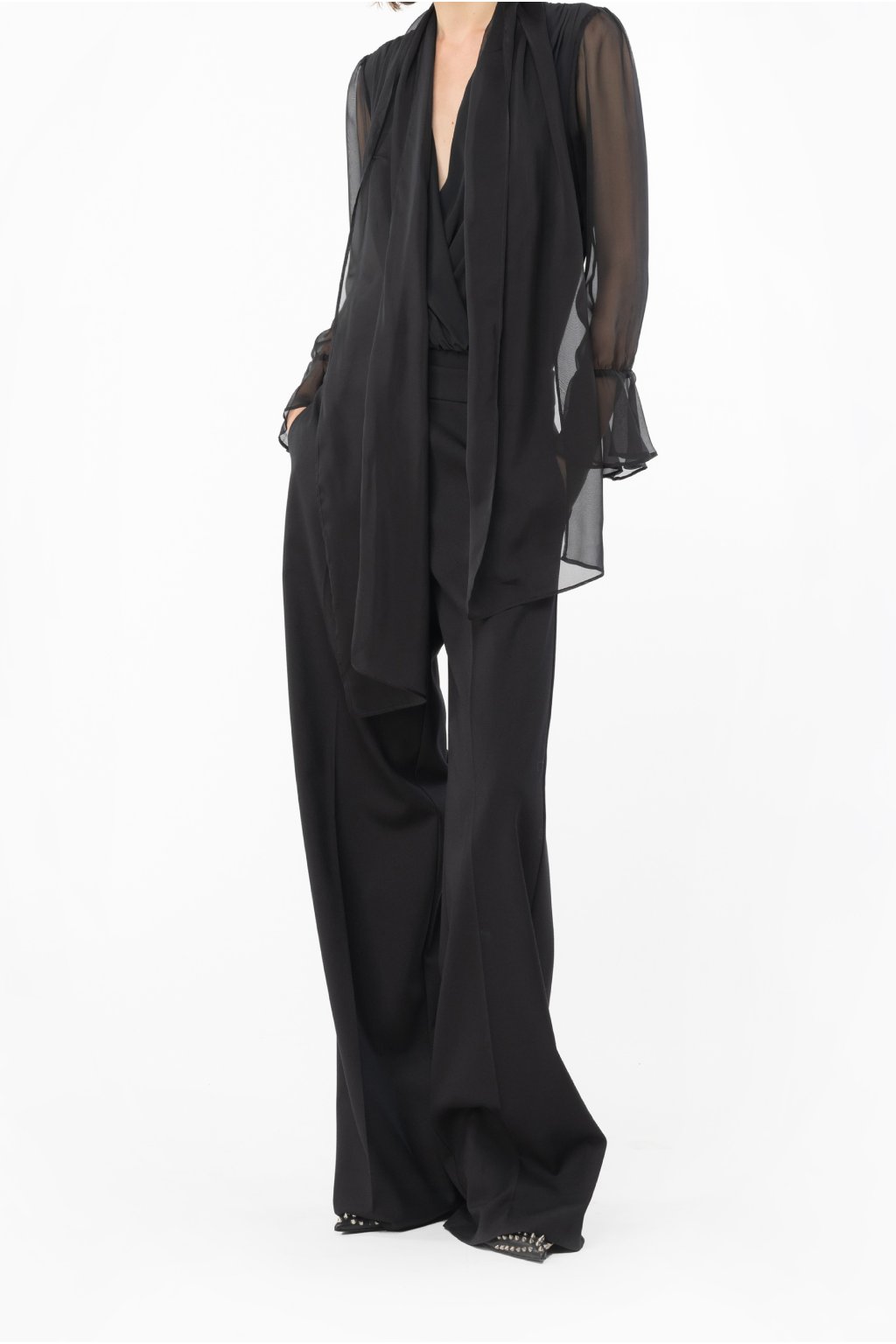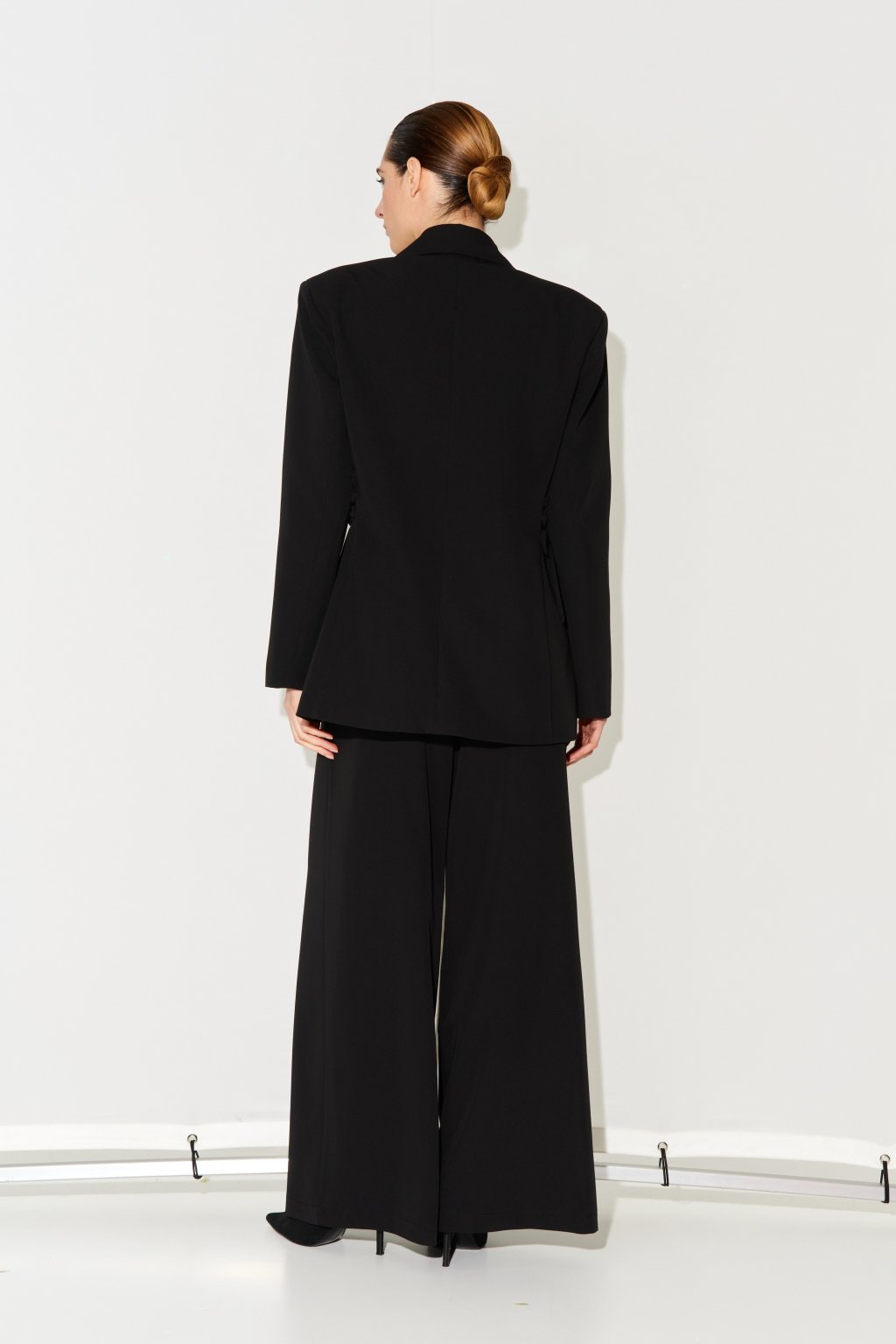 Černá sama o sobě zeštíhluje, ale aby outfit nepůsobil ploše, hrajte si s proporcemi. Ke slim kalhotám volte volnější svetr nebo sako s výraznými rameny, naopak k širokým kalhotám úzký top či rolák. Právě hra se siluetou dává černému looku módní hloubku.