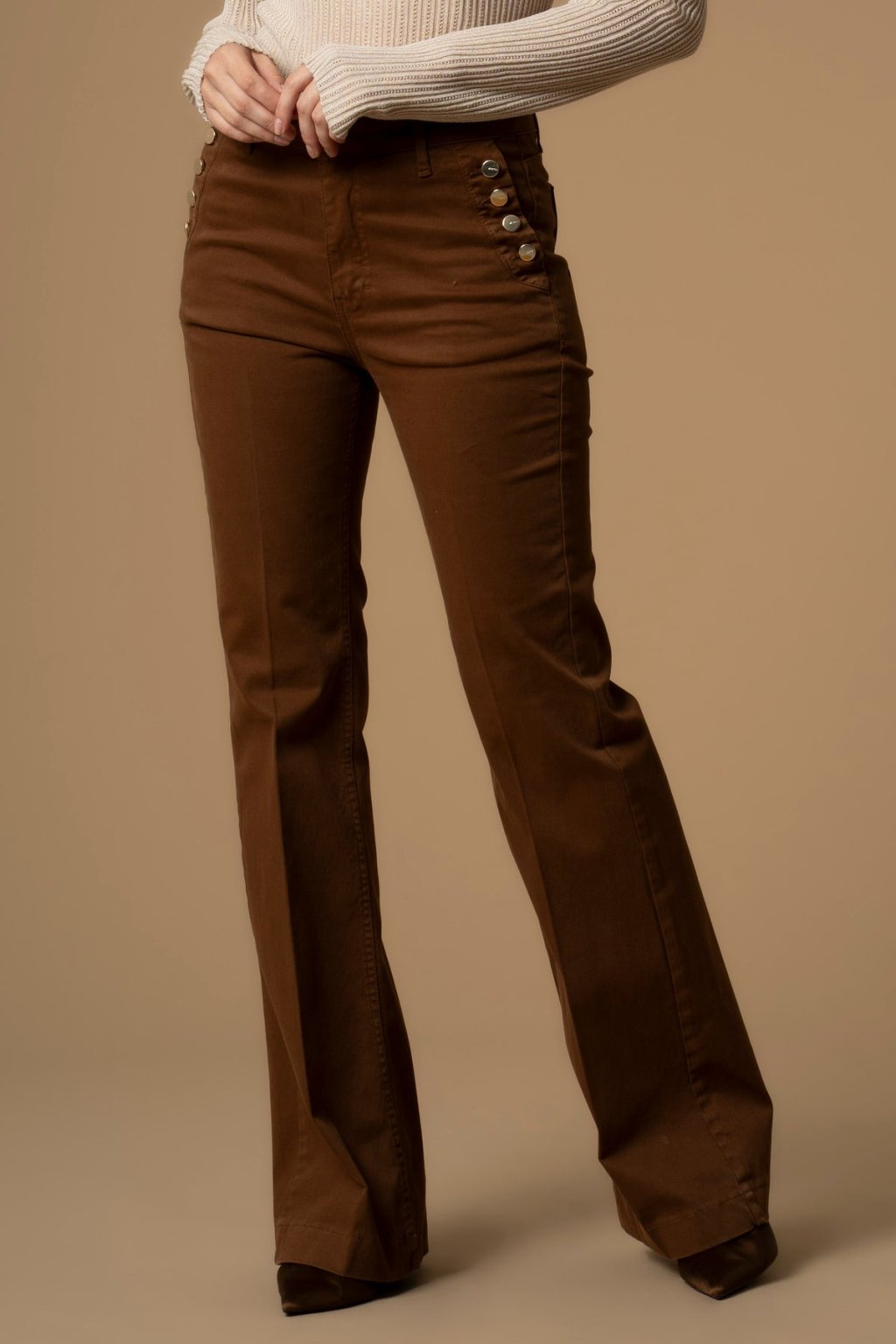 Elegantní kalhoty z kvalitní bavlny s elastanem dokonale formují postavu a díky originálnímu detailu s cvoky působí zajímavě a netradičně. Hodí se jak do kanceláře, tak i na večerní akce – stačí přidat podpatky a výrazné šperky. Jsou důkazem, že pohodlí a elegance mohou jít ruku v ruce.