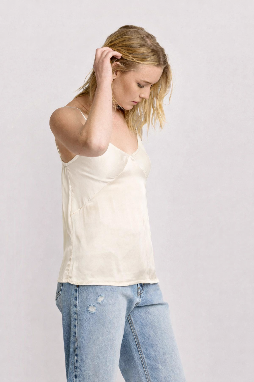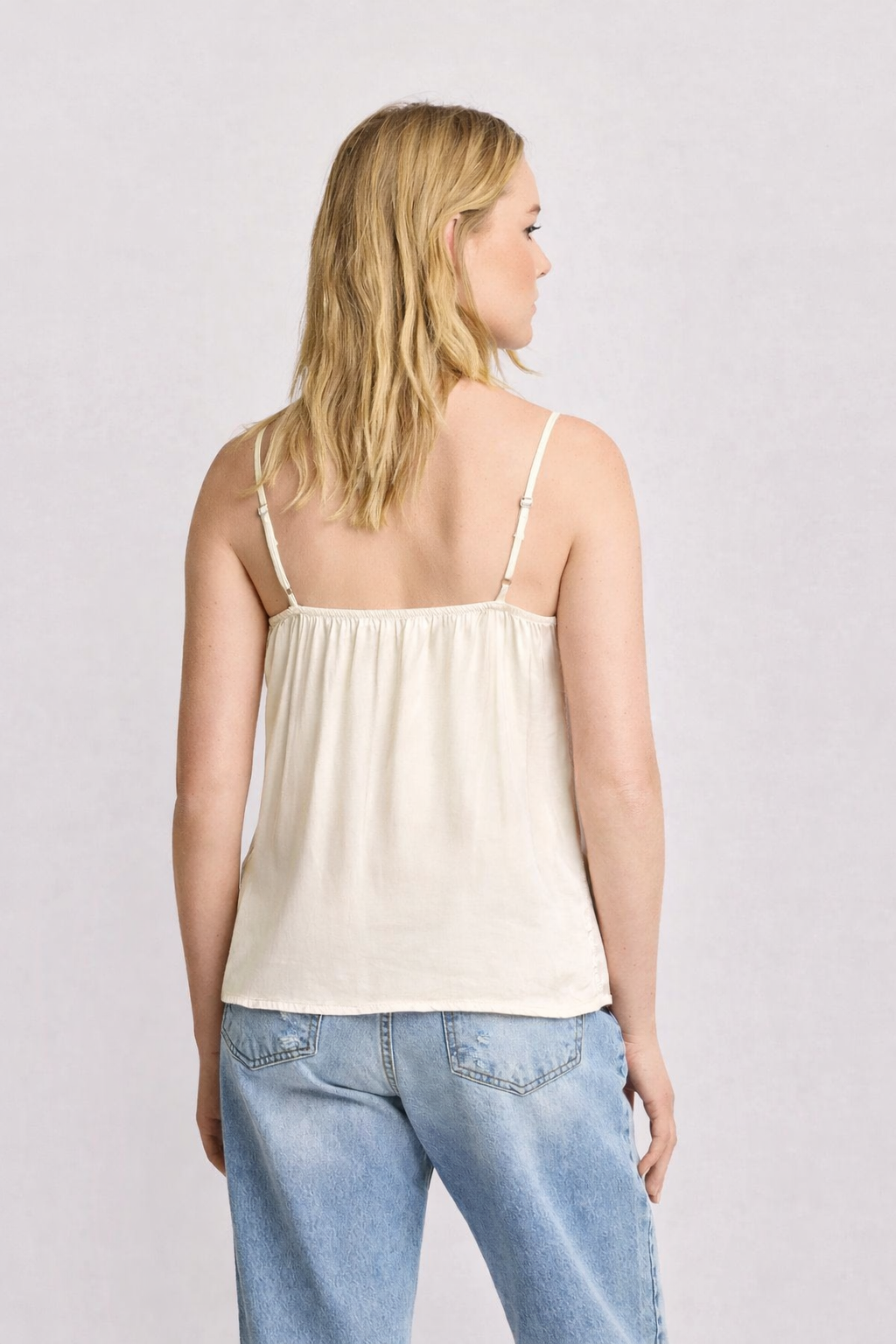 Minimalistický střih působí čistě a sofistikovaně, zatímco krémový odstín dodává outfitu jemnost a nadčasovou eleganci. Tílko lze snadno kombinovat s různými styly – od casual kombinací s džínami až po elegantní outfit se sukní nebo kalhotami.
