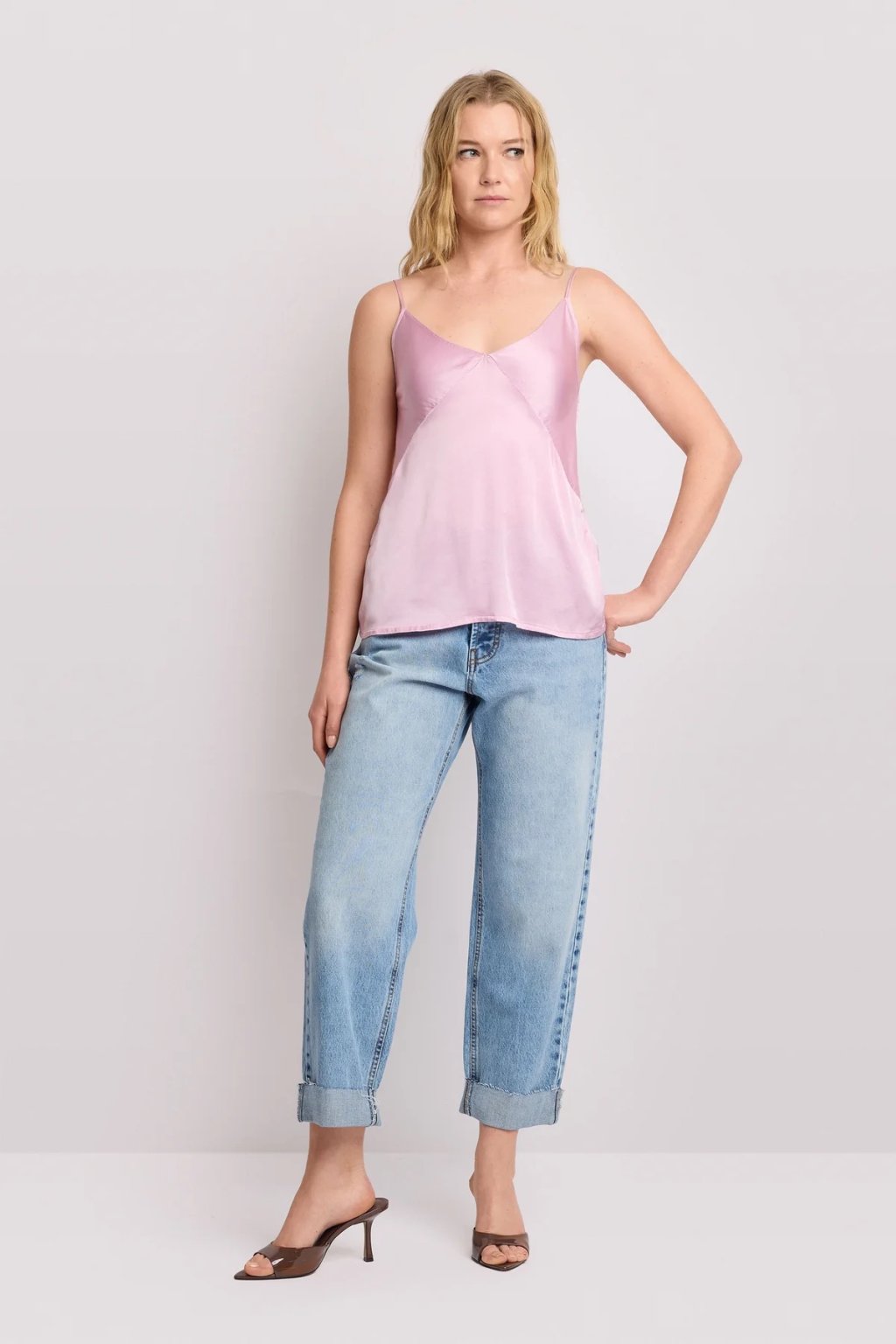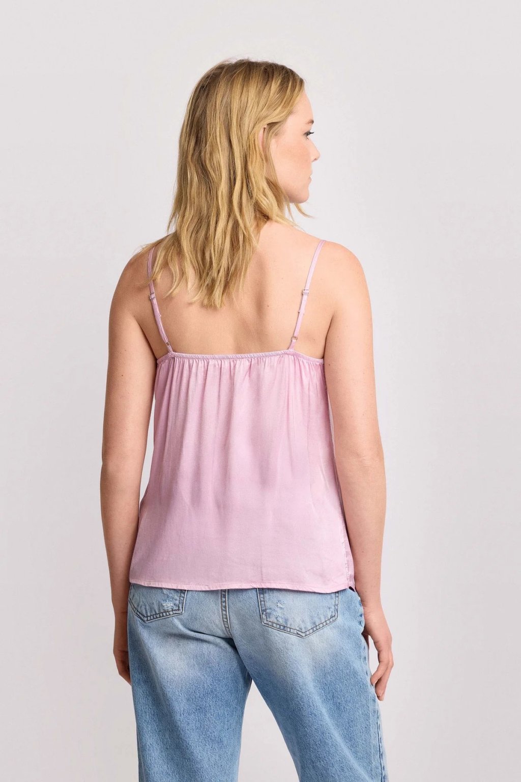 Dámské elegantní tílko je ideálním základním kouskem šatníku, který využijete po celý rok. Viskózový materiál je příjemný na dotek, vzdušný a krásně splývá, díky čemuž dodává outfitu jemný a sofistikovaný vzhled. Růžová barva působí svěže, žensky a velmi elegantně.