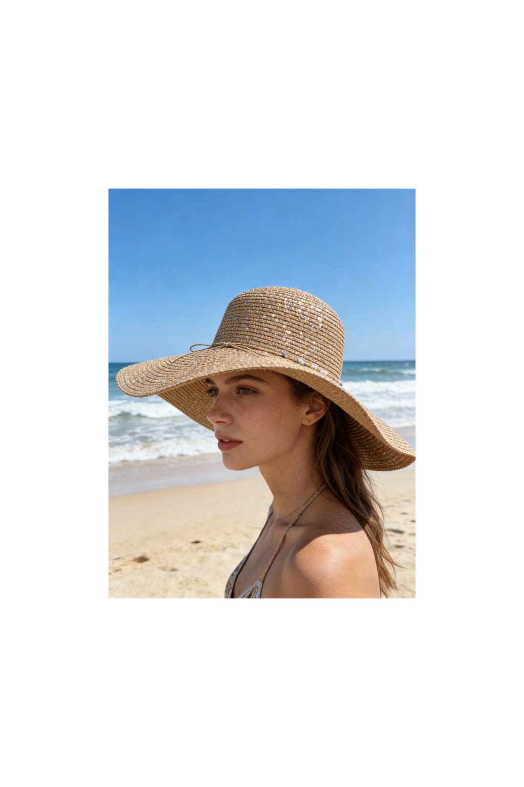 Tento dámský elegantní letní plážový klobouk s korálky je perfektní volbou pro každou ženu, která chce vypadat stylově a zároveň chránit svou pokožku před slunečními paprsky. Klobouk je vyroben z lehkého a prodyšného materiálu, takže je příjemný na nošení i během horkých letních dní.