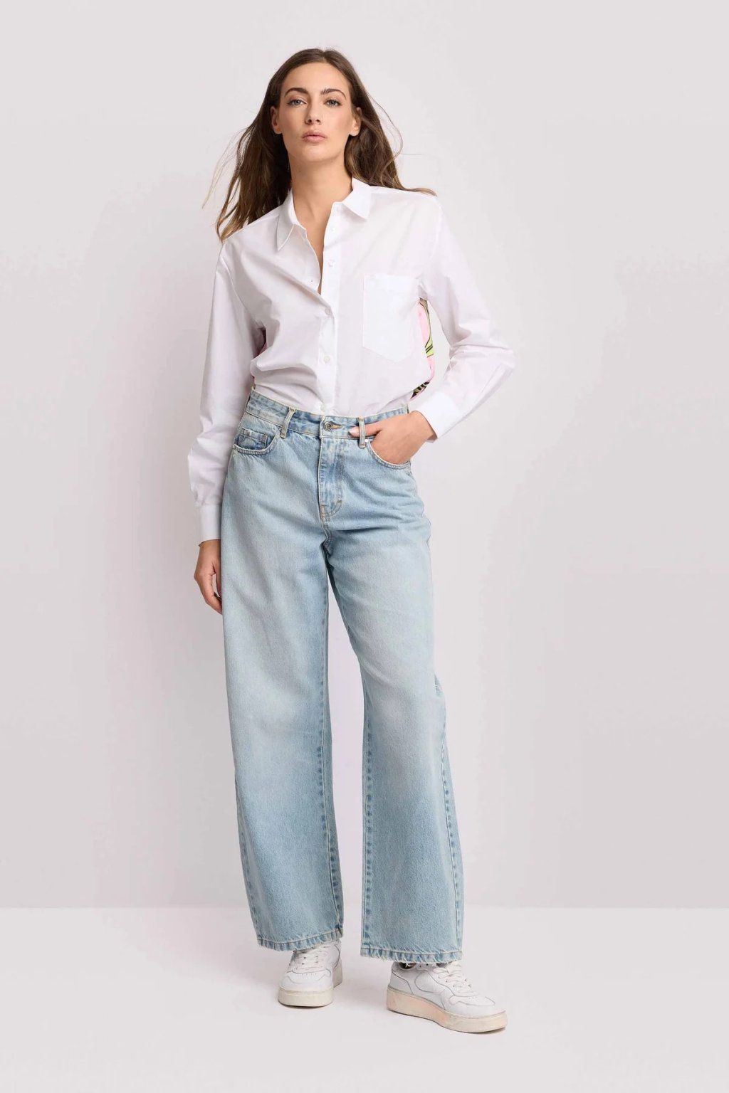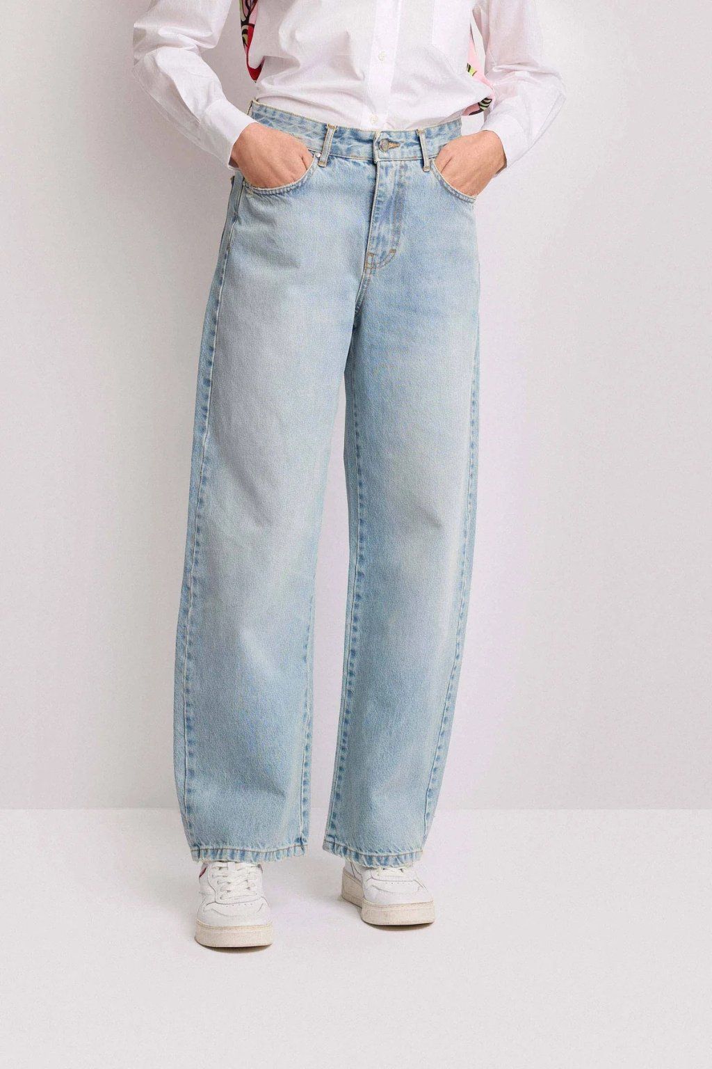 Světlý odstín působí svěže a je ideální pro jarní a letní sezónu. Díky širokým nohavicím džíny krásně splývají a dodávají outfitu lehkost. Jsou vhodné jak pro casual styl, tak i pro promyšlenější kombinace s elegantními prvky.