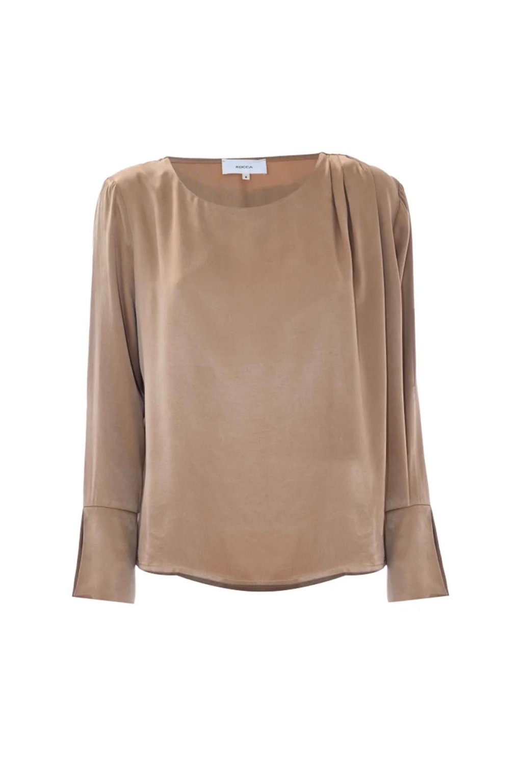 Dopřejte si jemnost a eleganci s touto béžovou viskózovou halenkou Kocca, která je vyrobena z kvalitní směsi viskózy a cupra. Halenka má hladký povrch a krásně splývavý střih, který působí sofistikovaně a lichotí postavě. Díky své neutrální barvě se snadno kombinuje a je ideálním základem pro elegantní i každodenní styling.