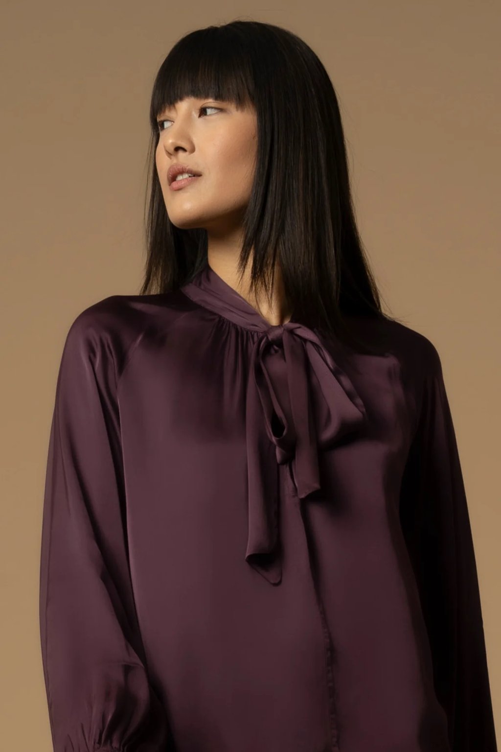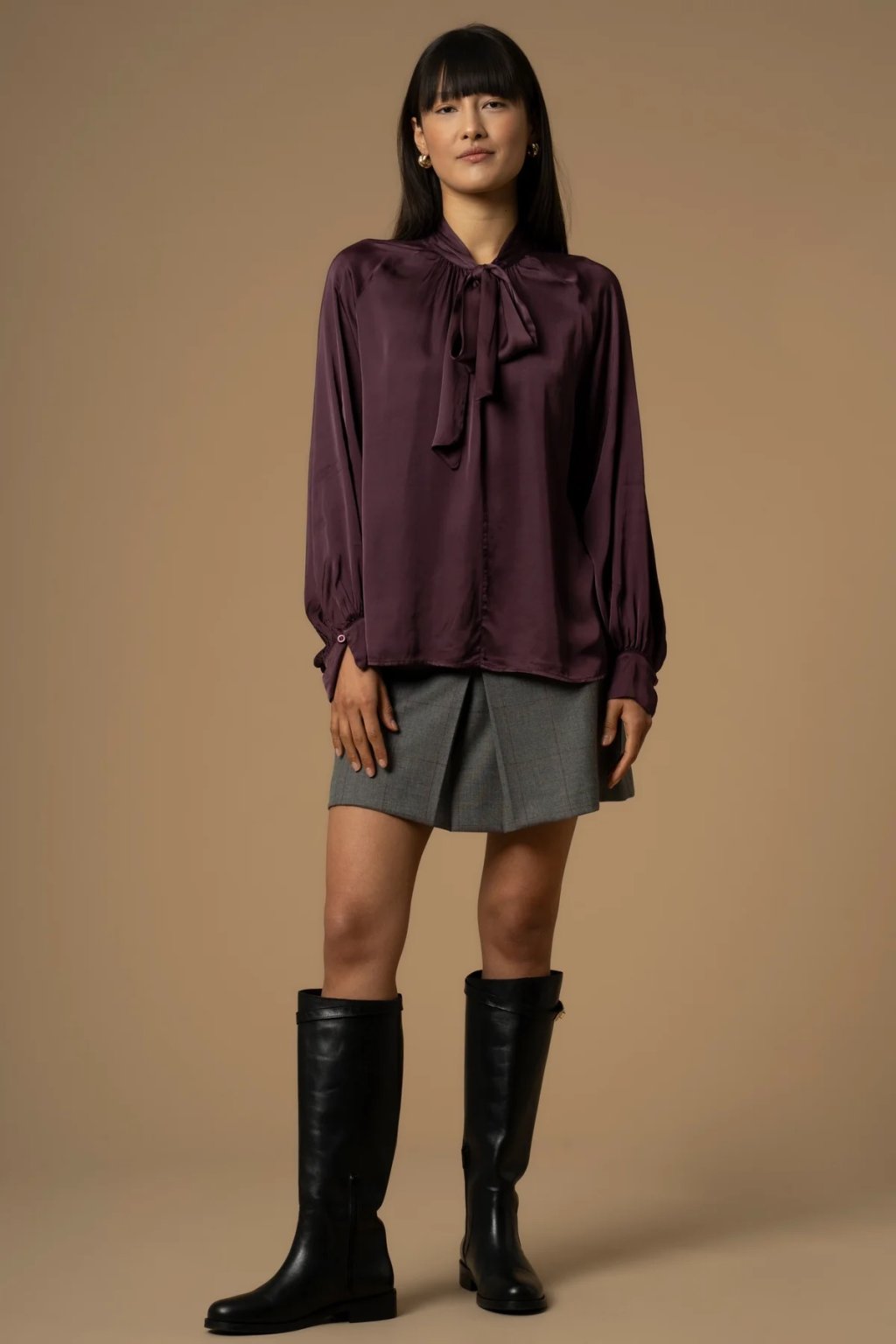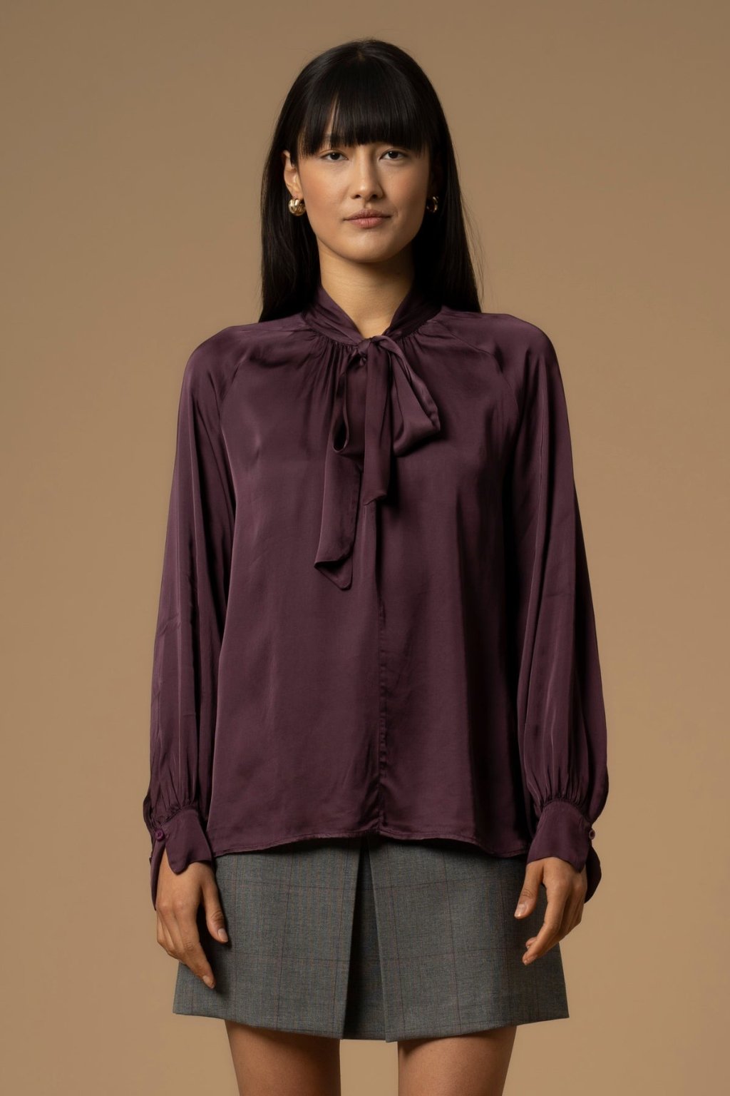 Dopřejte si dotek elegance s touto luxusní halenkou Kocca ze 100% viskózy. Její tmavě fialová barva působí noblesně a okouzlujícím dojmem, zatímco vázání u krku dodává outfitu romantický a zároveň sofistikovaný akcent.
