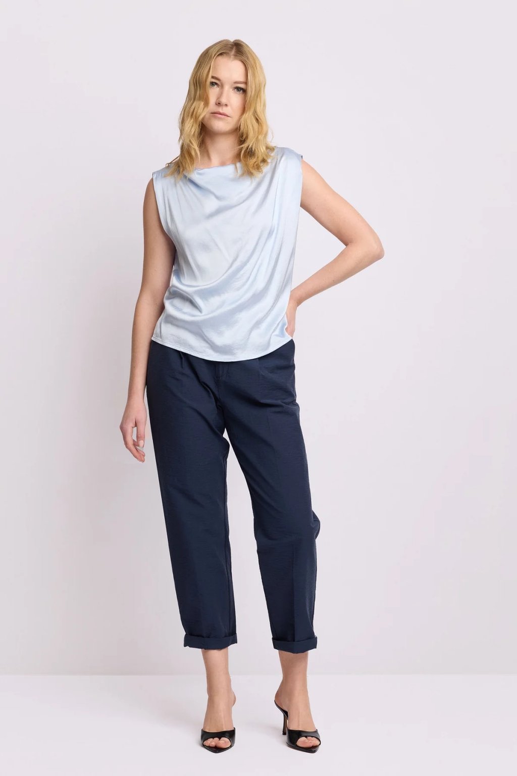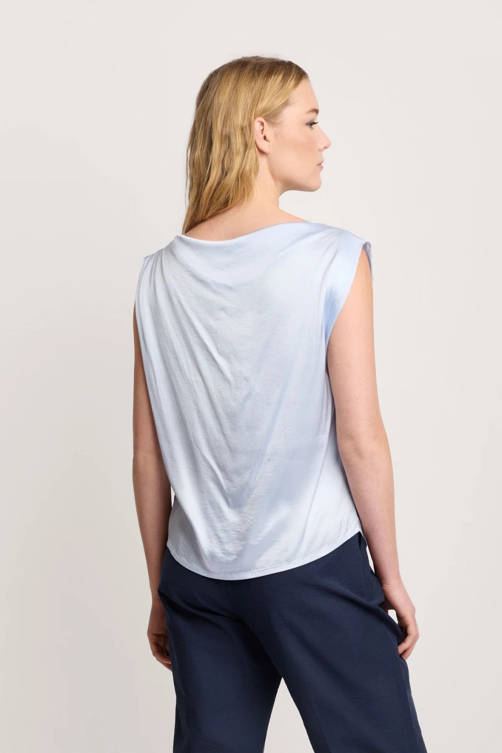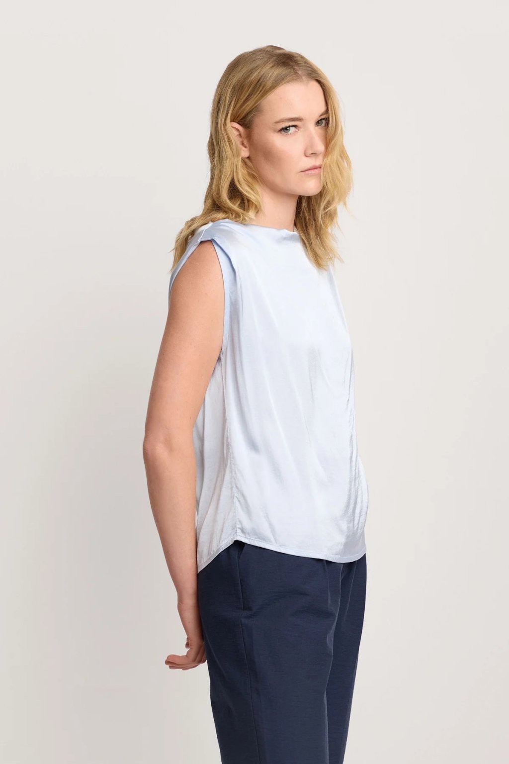 Vzdušné provedení zajišťuje maximální komfort i během teplejších dnů a halenka se přirozeně přizpůsobí pohybu těla. Díky svému čistému a nadčasovému designu se snadno kombinuje a stává se univerzálním základem šatníku.