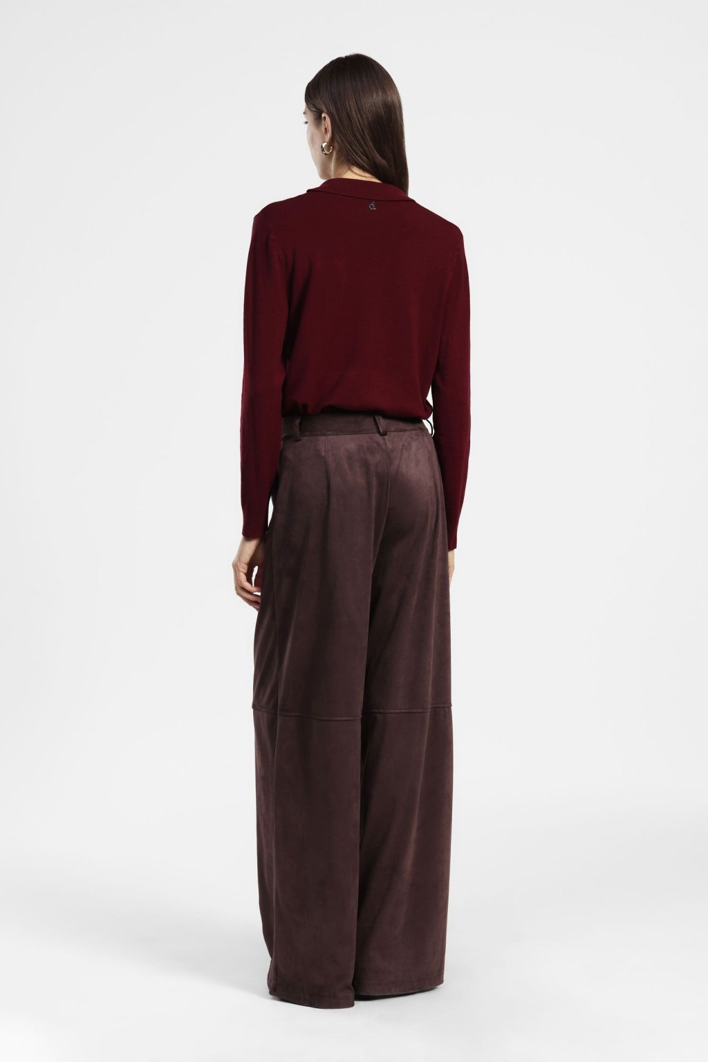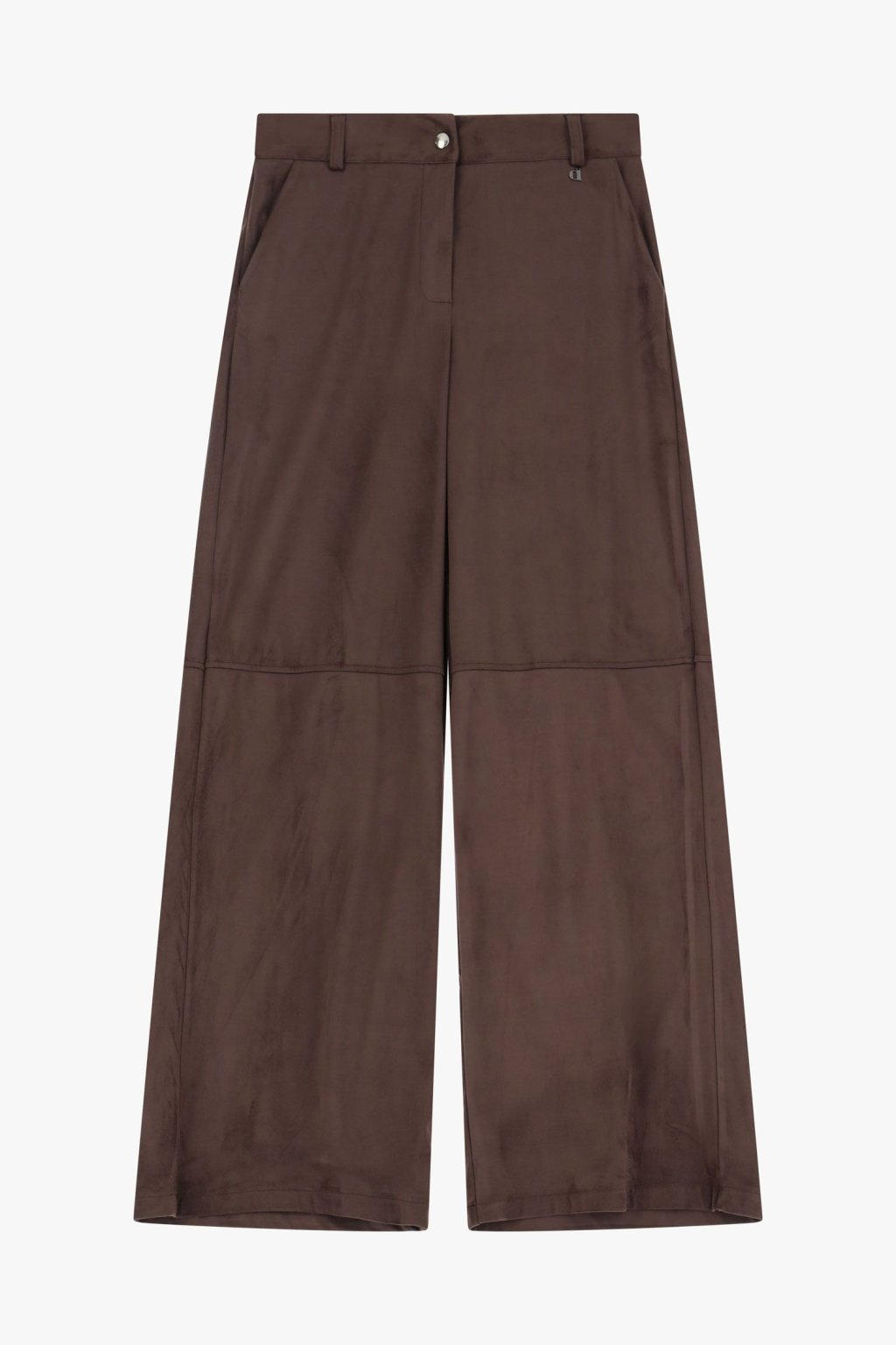 Dámské semišové kalhoty Dixie vynikají svým širokým střihem a příjemným hladkým materiálem, který dodává outfitu luxusní a sofistikovaný vzhled. Semiš působí elegantně, zároveň je hřejivý a proto jsou tyto kalhoty skvělou volbou do podzimního a zimního období.