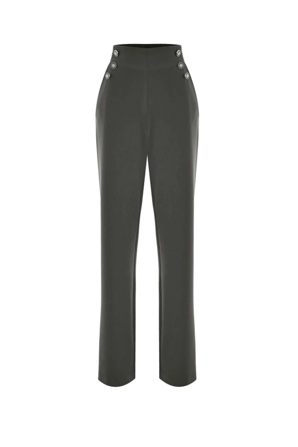 Kocca Dámské elegantní khaki kalhoty s vysokým pasem
