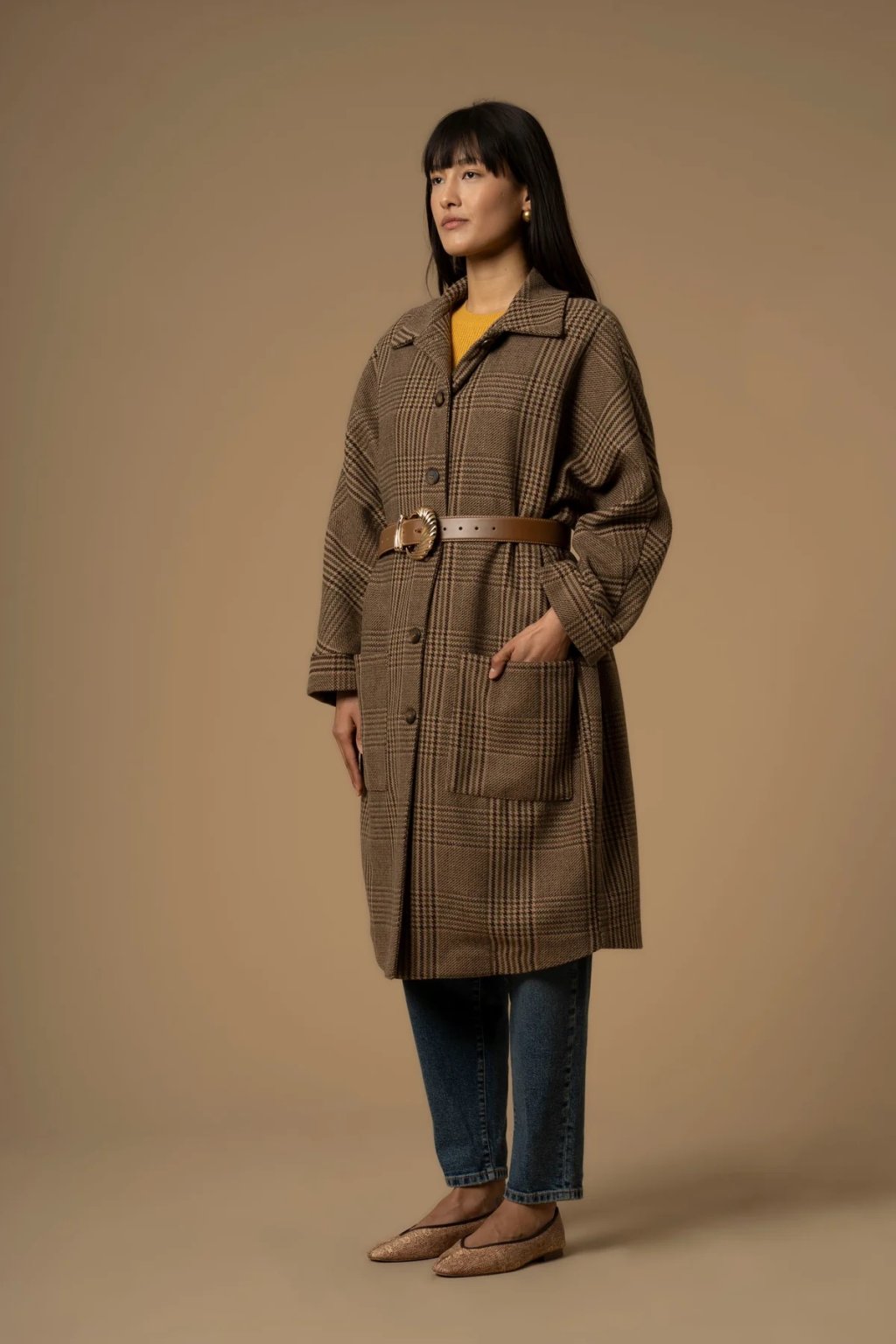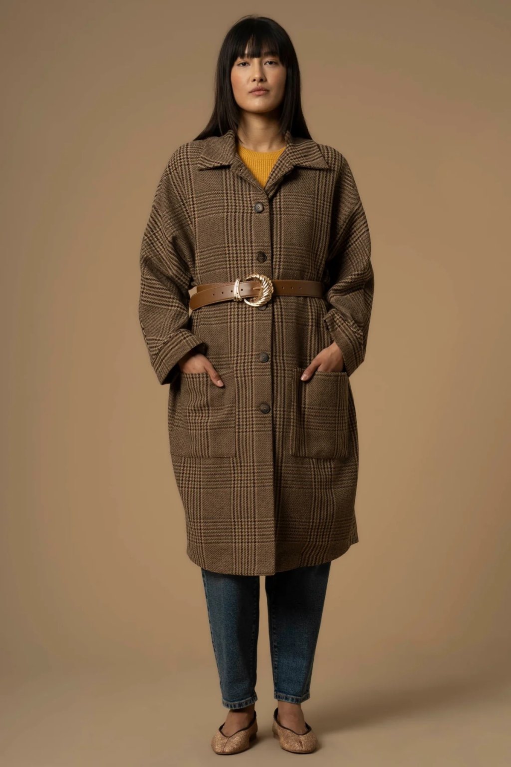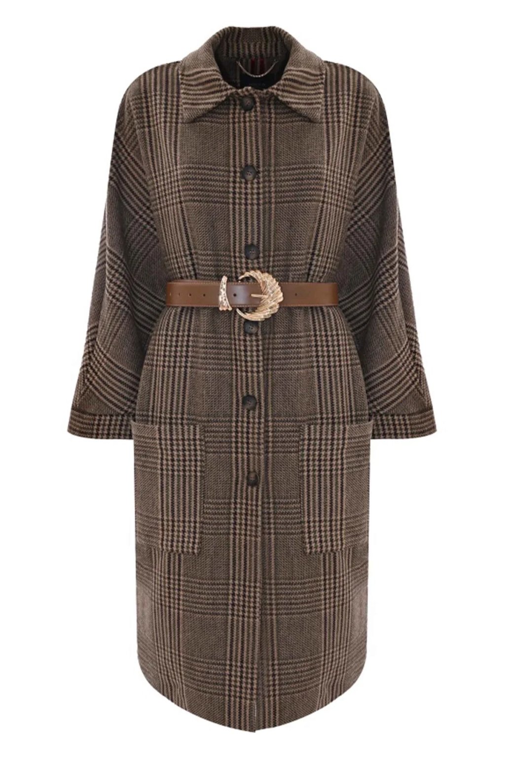 Kocca Dámský elegantní károvaný svetr s páskem a knoflíky