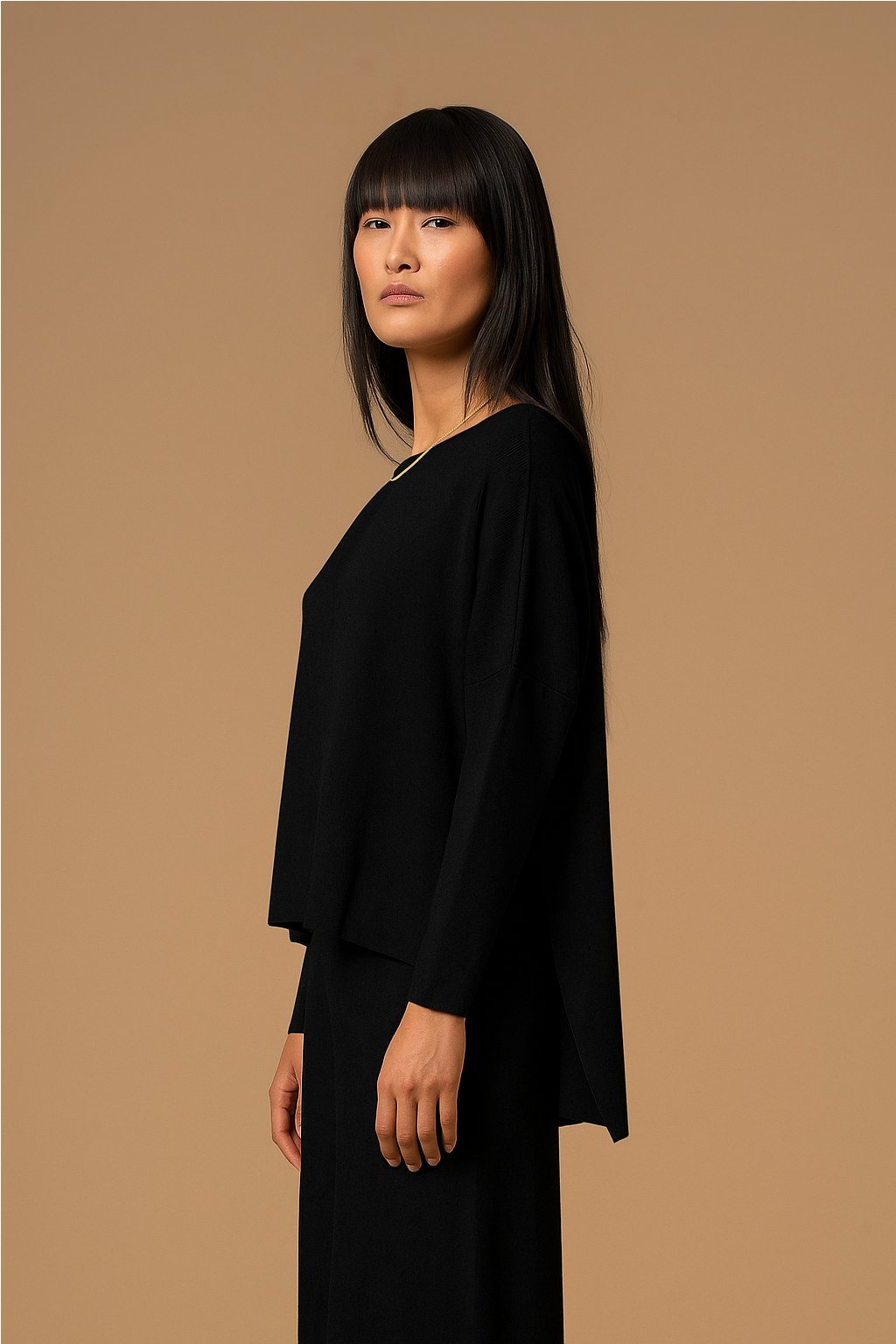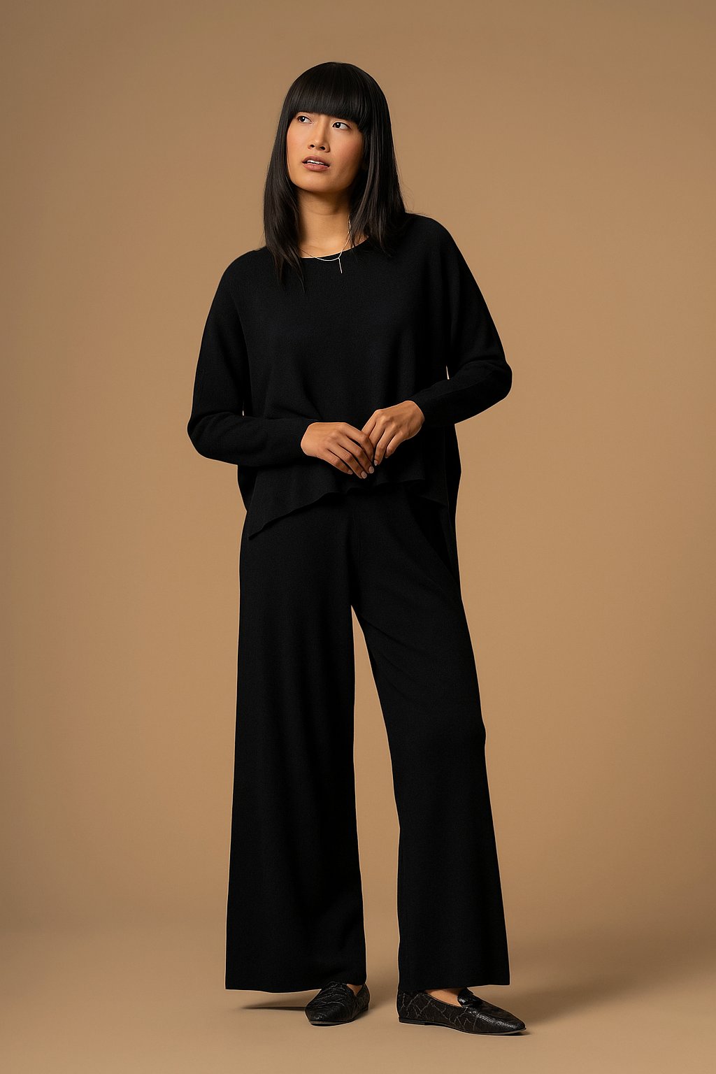 Samostatně: svetr lze nosit i k džínům nebo sukni, kalhoty zase skvěle fungují s basic topem.
