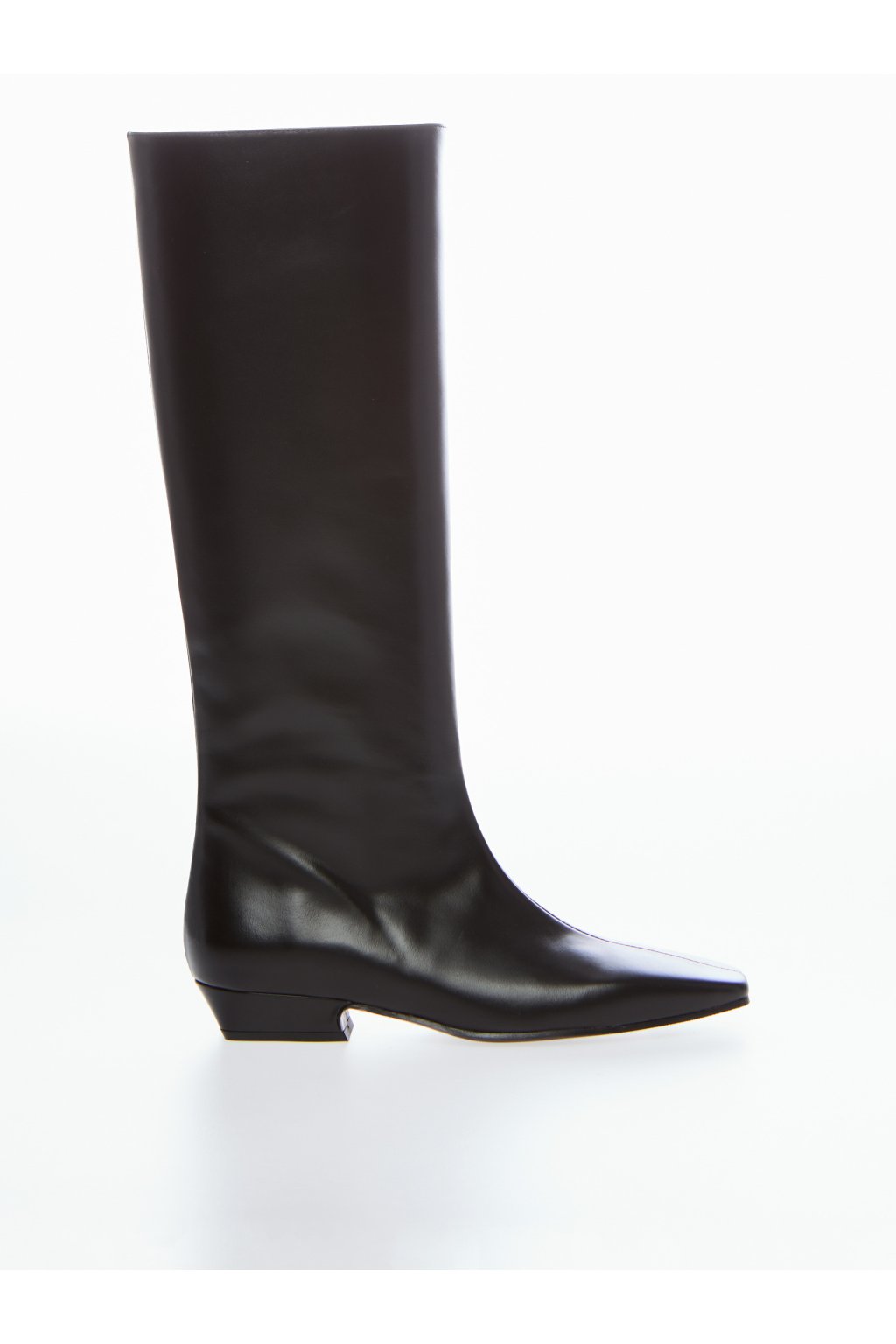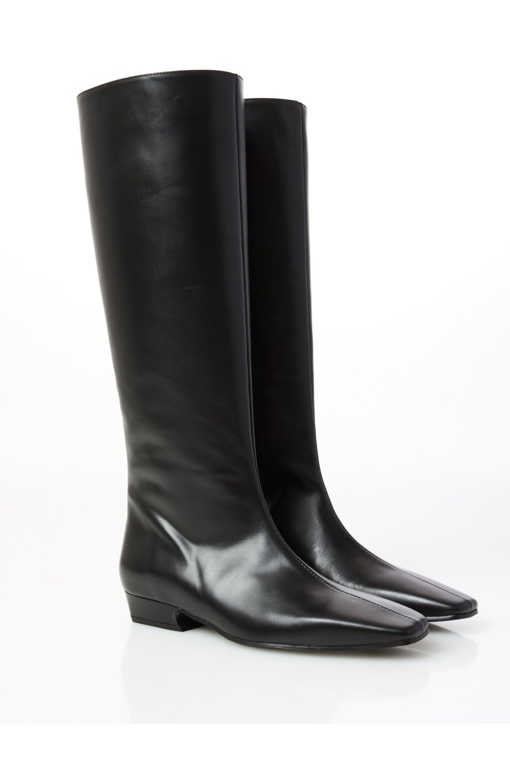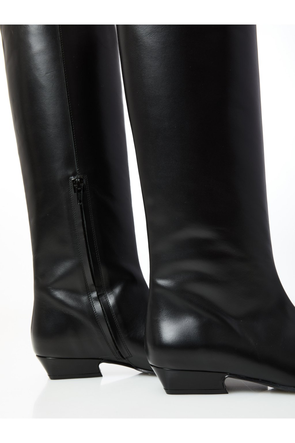 Tyto luxusní černé kožené kozačky Ovyé jsou ztělesněním italské elegance a pohodlí. Vyrobené z hladké, kvalitní kůže, dokonale obepínají nohu a vytvářejí štíhlou siluetu. Nízký podpatek zaručuje maximální komfort při každodenním nošení, aniž by se muselo ustupovat stylu.