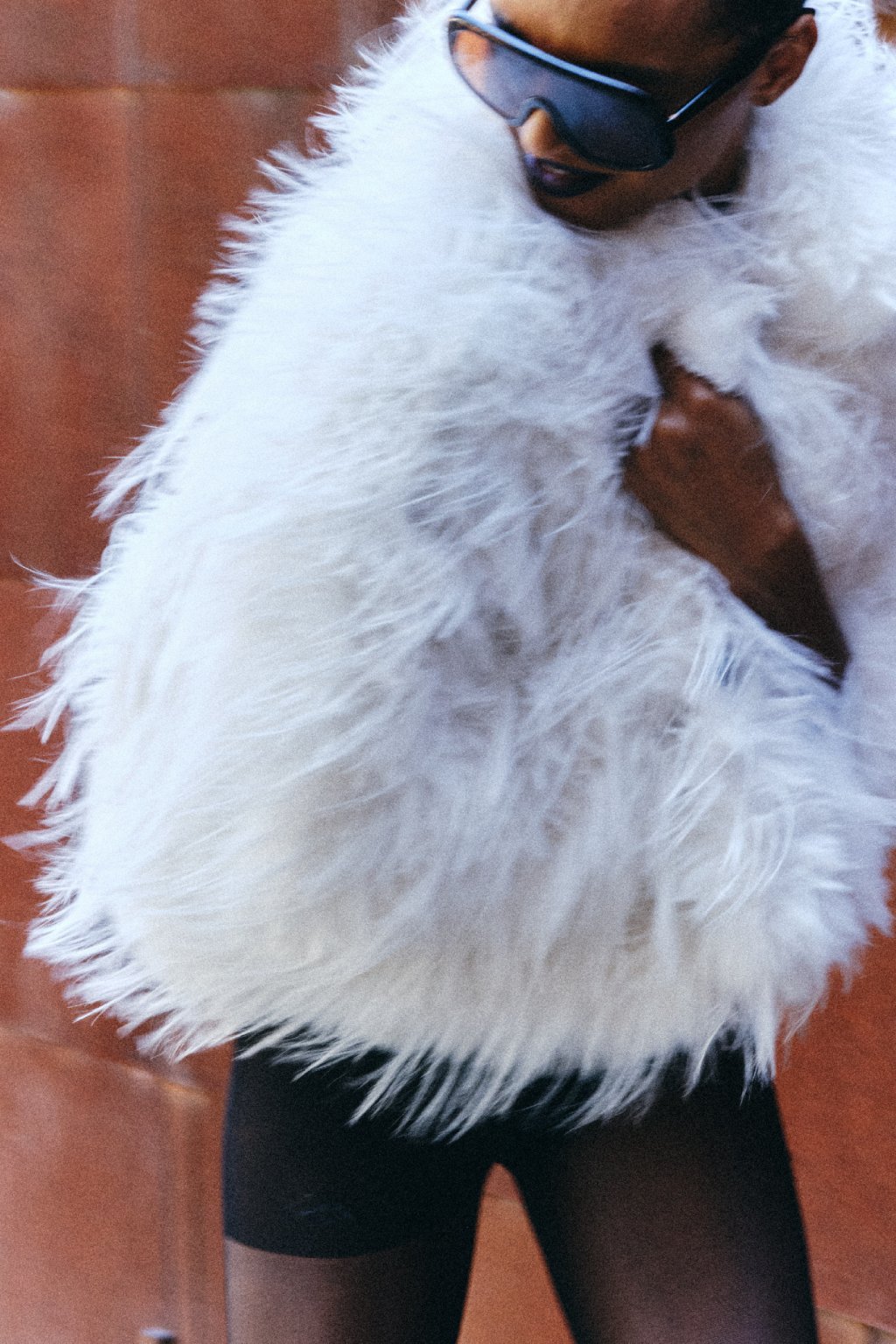 Objevte zimní eleganci s kožichem Lumina v čistě bílé barvě. Tento kratší kožich zaujme svou strukturou – základní vrstva jemných chloupků je pokrytá delšími vlákny, které vytvářejí luxusní, nadýchaný efekt a dodávají mu exkluzivní vzhled pravé kožešiny, aniž by byla použitá.