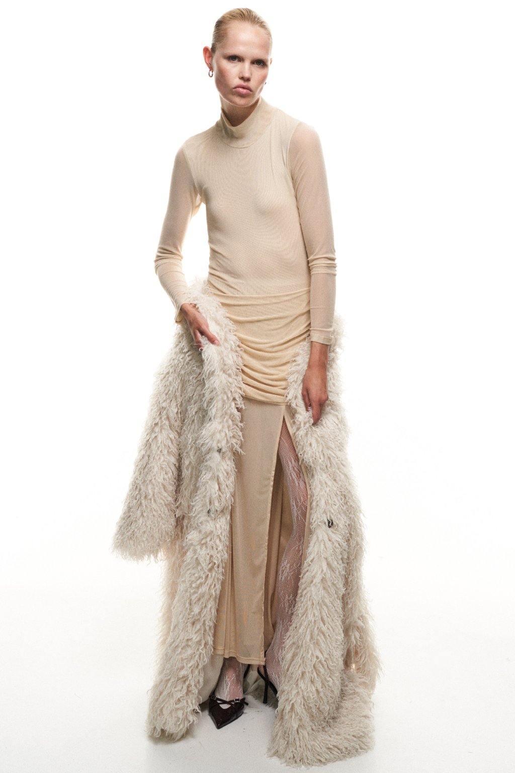 Kožich má chlupatý pásek na zavázání, díky němuž si snadno zvýrazníte pas a dodáte postavě ženskou siluetu. Díky své délce krásně zahřeje i v nejchladnějších dnech, zatímco jeho jemný lesk a struktura působí velmi sofistikovaně.