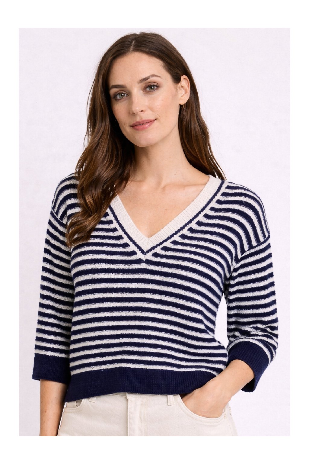 Pruhovaný vzor dodává svetříku stylový charakter a zároveň vytváří elegantní vzhled vhodný pro různé příležitosti. Svetřík je příjemný na nošení a díky univerzálnímu střihu se snadno kombinuje s dalšími kousky šatníku.