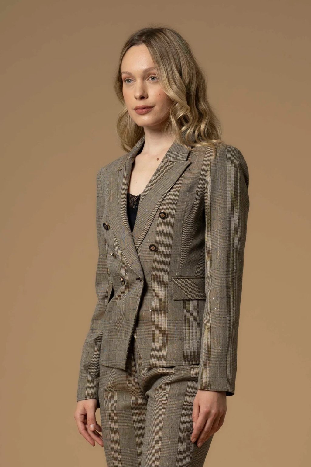 Kocca Dámské elegantní třpytivé dvojřadé sako