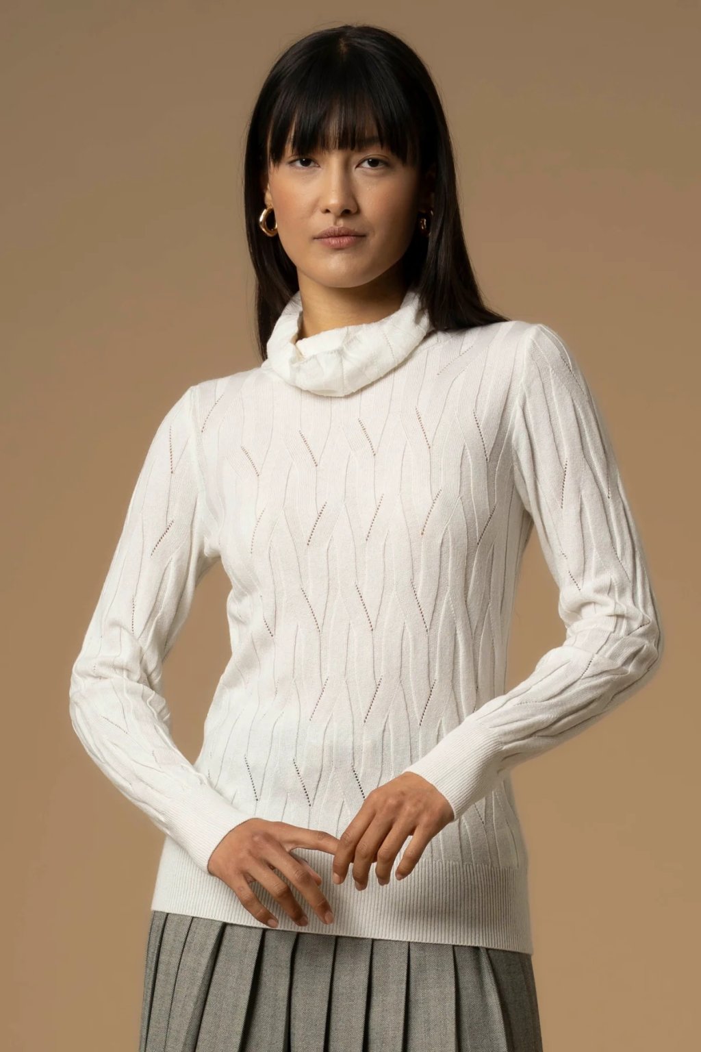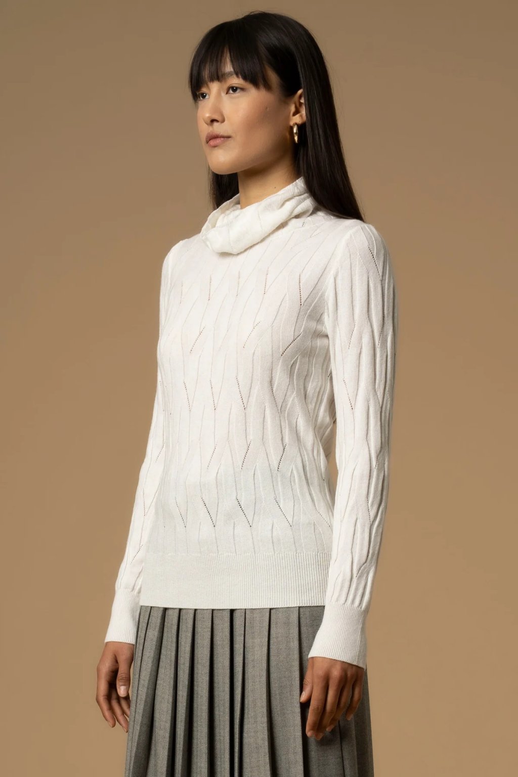 Univerzální bílá barva je snadno kombinovatelná – rolák působí elegantně samostatně, ale perfektně se hodí i jako základ pod sako, kabát nebo vestu. Elegantní střih navíc podtrhne ženskou siluetu a vytvoří čistý, sofistikovaný look.