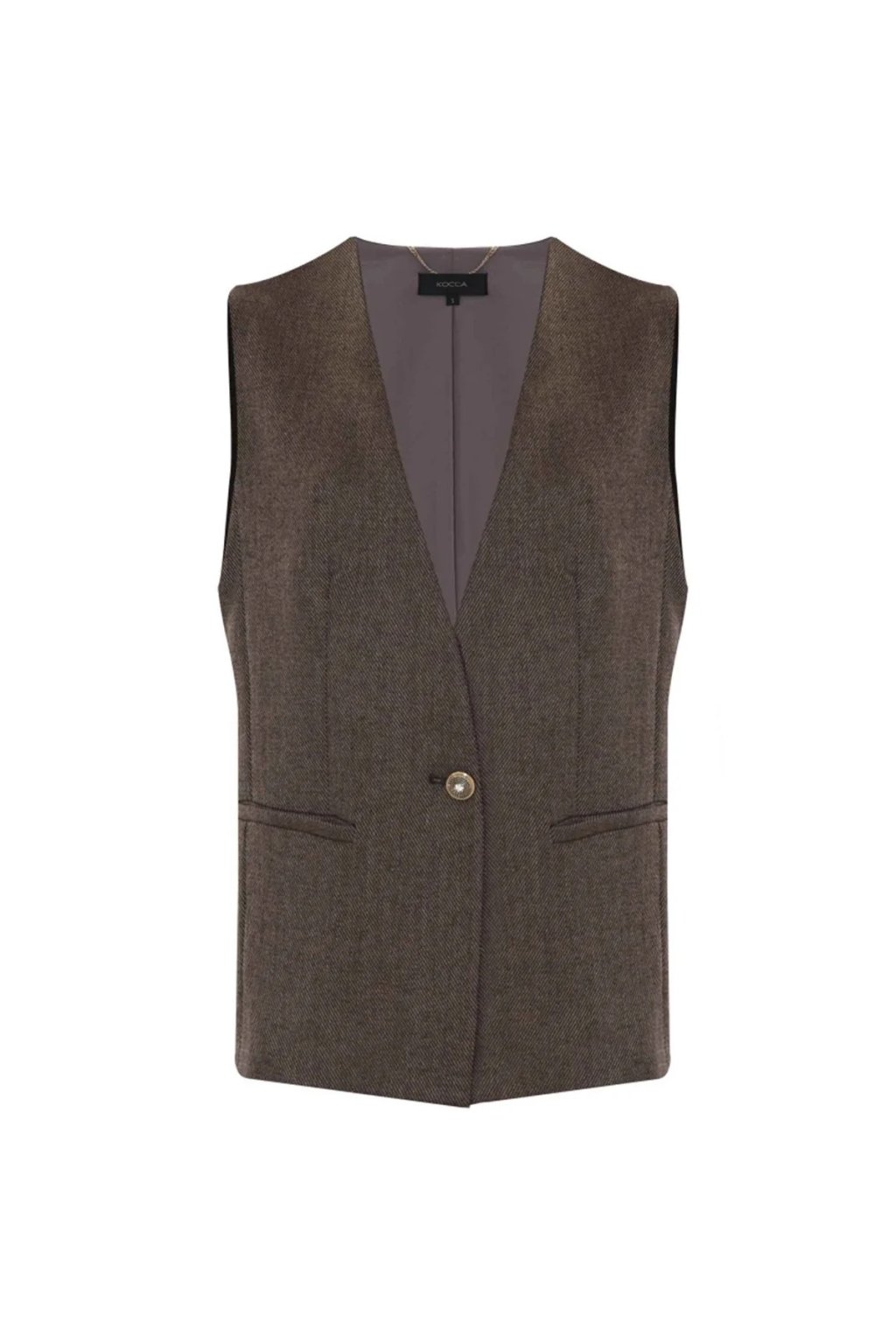Elegantní hnědá úpletová vesta Kocca je tím pravým kouskem pro ženy, které milují styl, komfort a variabilitu. Její delší střih sahající pod zadek lichotí postavě, prodlužuje siluetu a zároveň je velmi pohodlný. Jemný úplet je příjemný na nošení a díky jednoduchému zapínání na elegantní knoflík působí minimalisticky, ale zároveň šik.