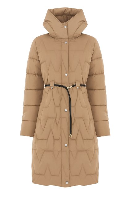 Kocca Dámská zimní prošívaná dlouhá lesklá bunda s páskem
