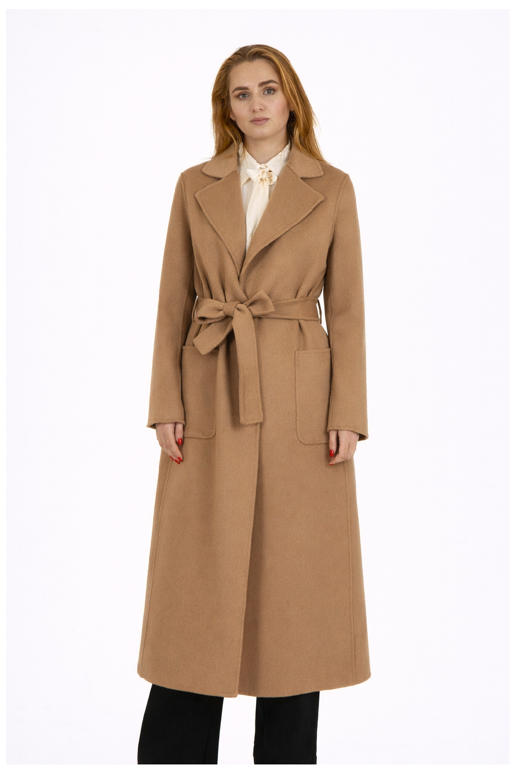 Kocca Dámský vlněný kabát s vázáním