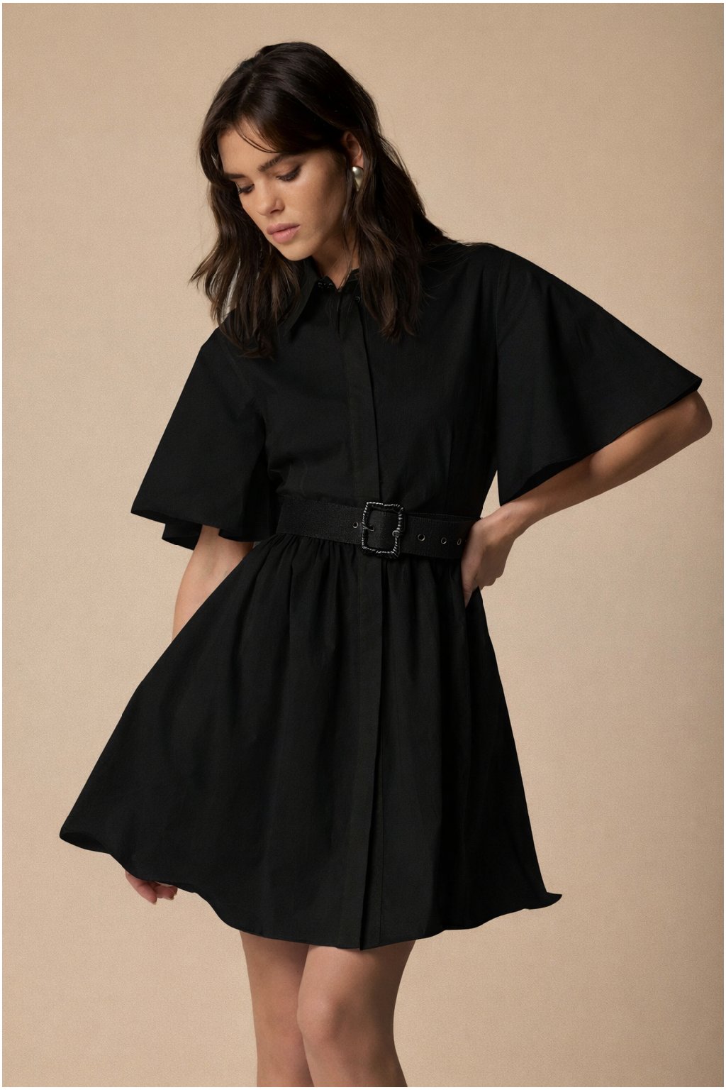 Dámské bavlněné šaty Kocca jsou dokonalým spojením elegance, pohodlí a ženské rafinovanosti. Díky luxusnímu pásku se zlatou sponou krásně zvýrazní pas a podtrhnou siluetu. Pásek u černých šatů má také zlatou sponu. Široké rukávy dodávají outfitu vzdušnost a lehkost, zatímco áčkový střih sukně zajišťuje pohodlí i noblesní vzhled.