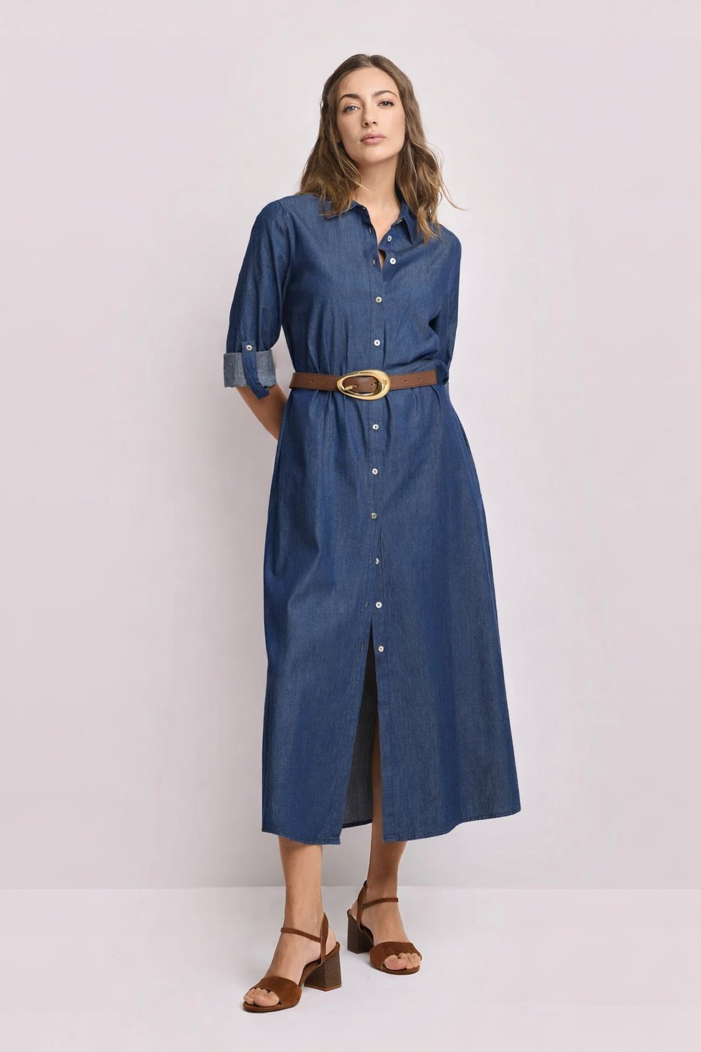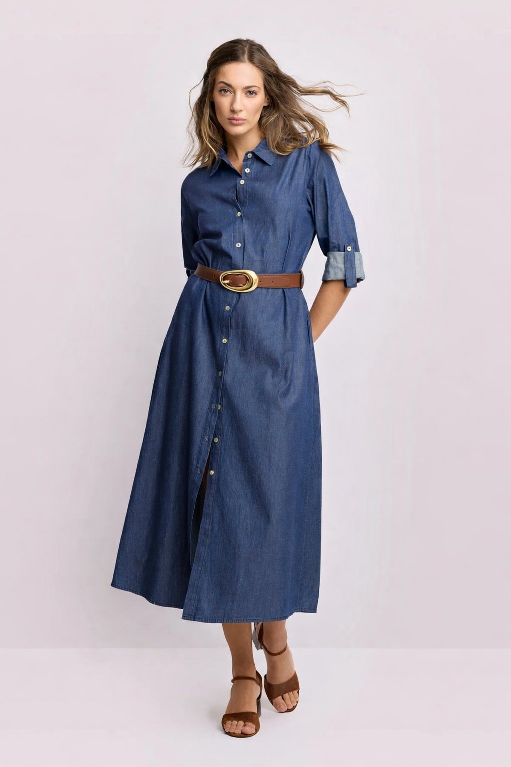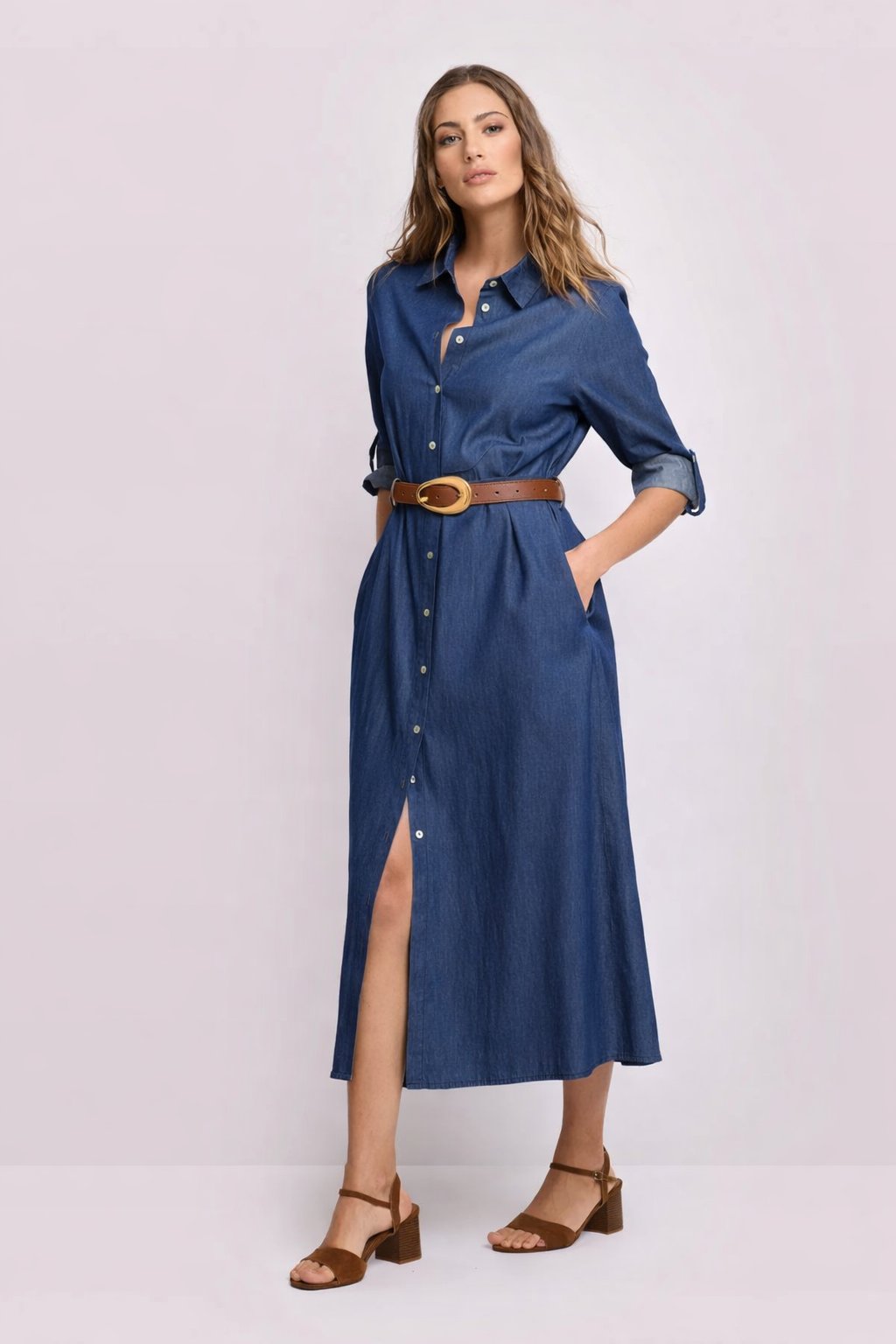 Denimové šaty Kocca jsou ikonickým kouskem, který spojuje nadčasovou eleganci s moderním stylem. Vyrobeny ze 100% bavlny, mají pevný a kvalitní materiál, který drží tvar a zajišťuje elegantní siluetu. Midi délka působí velmi ženským a sofistikovaným dojmem, zároveň je praktická a vhodná pro každodenní i společenské nošení.
