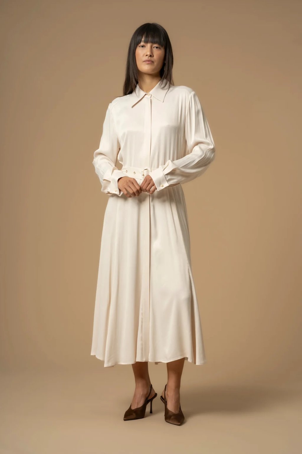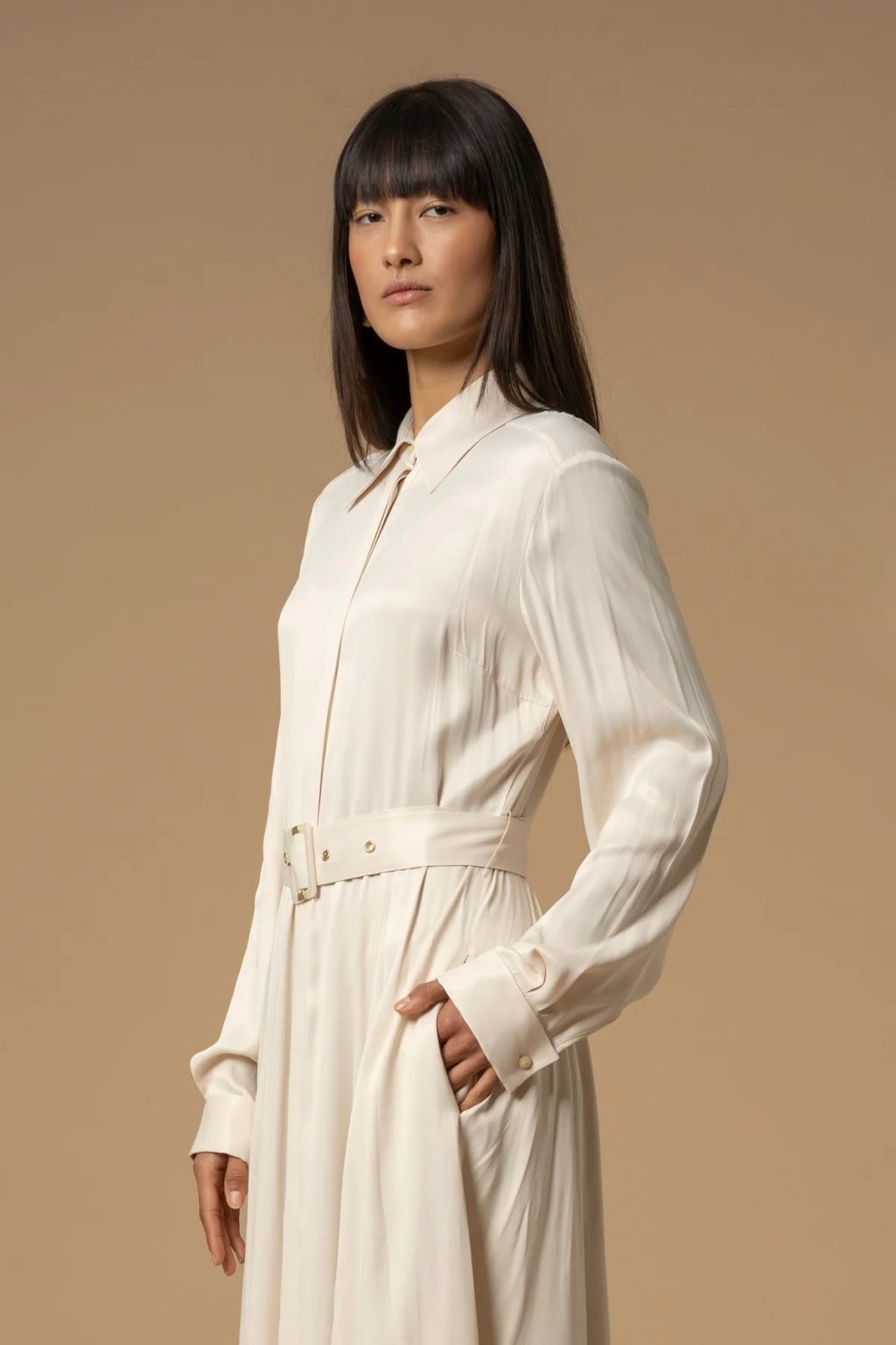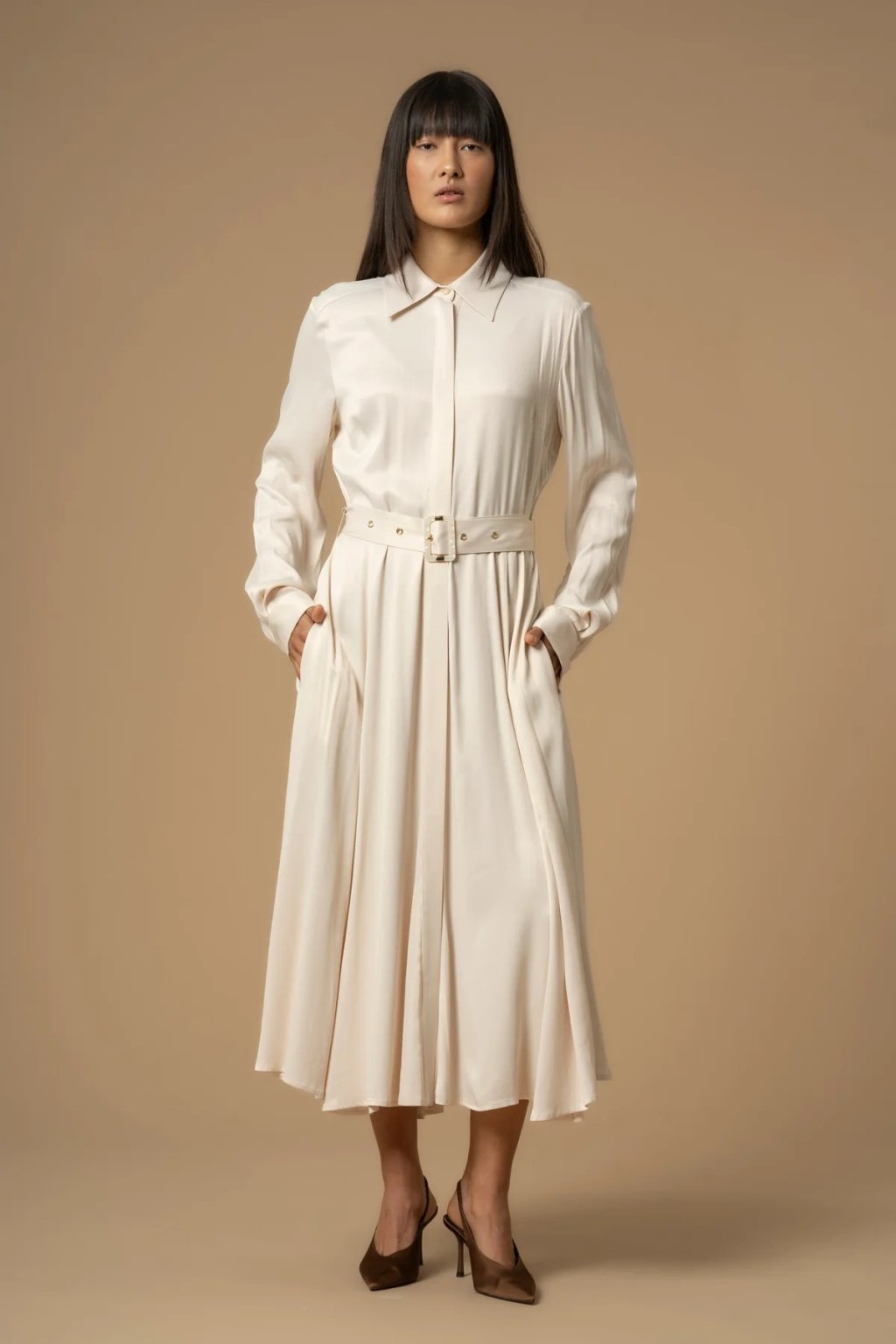 Elegantní střih s límečkem a páskem v pase